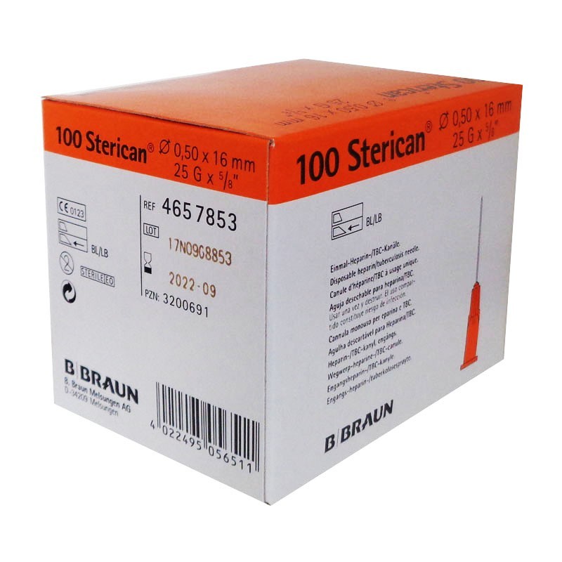 - Sterican 25G x 5/8 " - 0,5 x 16 mm.- Aplicacion habitual Subcutanea.