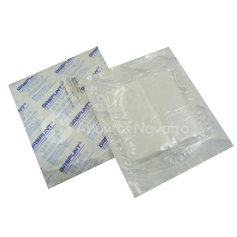 Sobre de gasa hidrofila estéril absorbente cortada y plegada 100 % algodon de 20x20 cm.