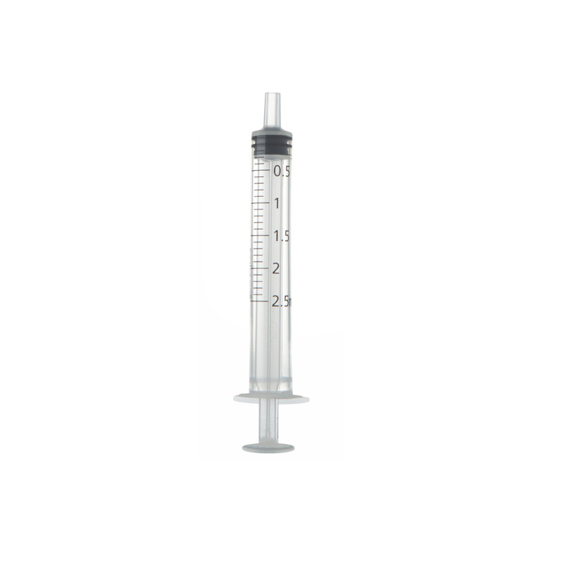 Jeringa de tres piezas sin aguja, de un solo uso para la aplicación de soluciones inyectables y extracción de sangre.