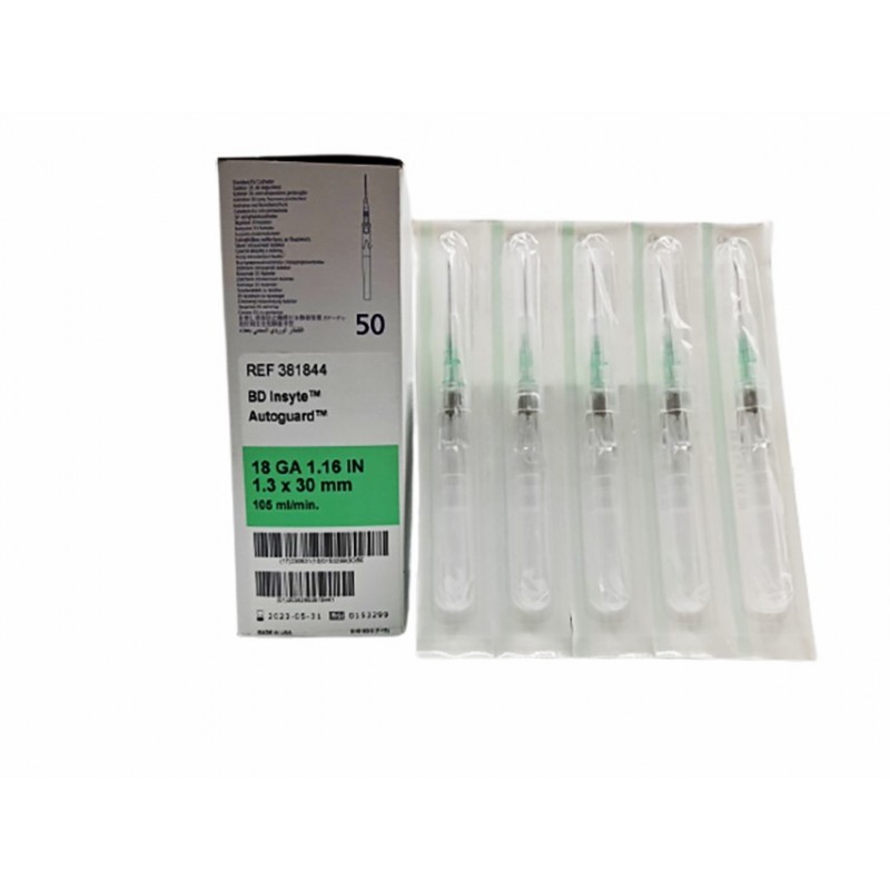 CATETER SEGURIDAD BD 18G 1,3 X 30 MM. Caja de 50 Unidades.