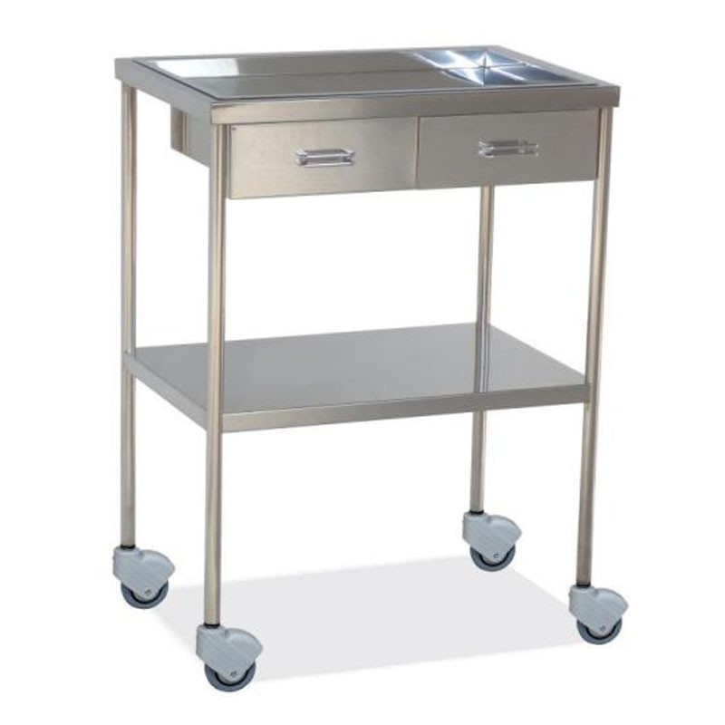 MESA AUXILIAR INOX. 2 CAJONES Y ESTANTE SUPERIOR EXTRAIBLE