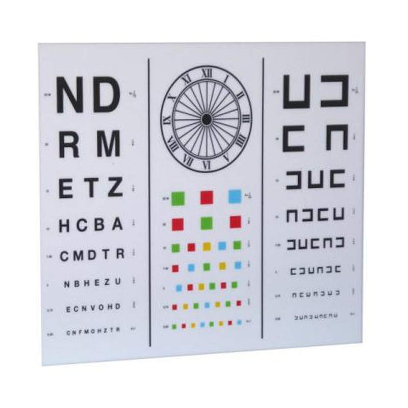Lamina para optotipo de 37 x 43 cm con serigrafía. El objetivo es examinar la agudeza visual con serigrafia a escala.