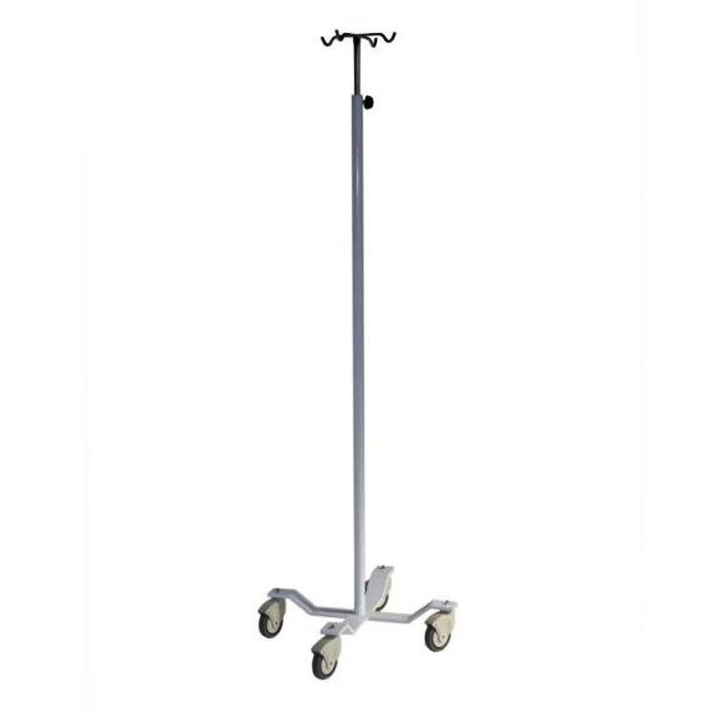 Porta sueros de acero pintado en blanco, con 4 colgadores y antivuelco.