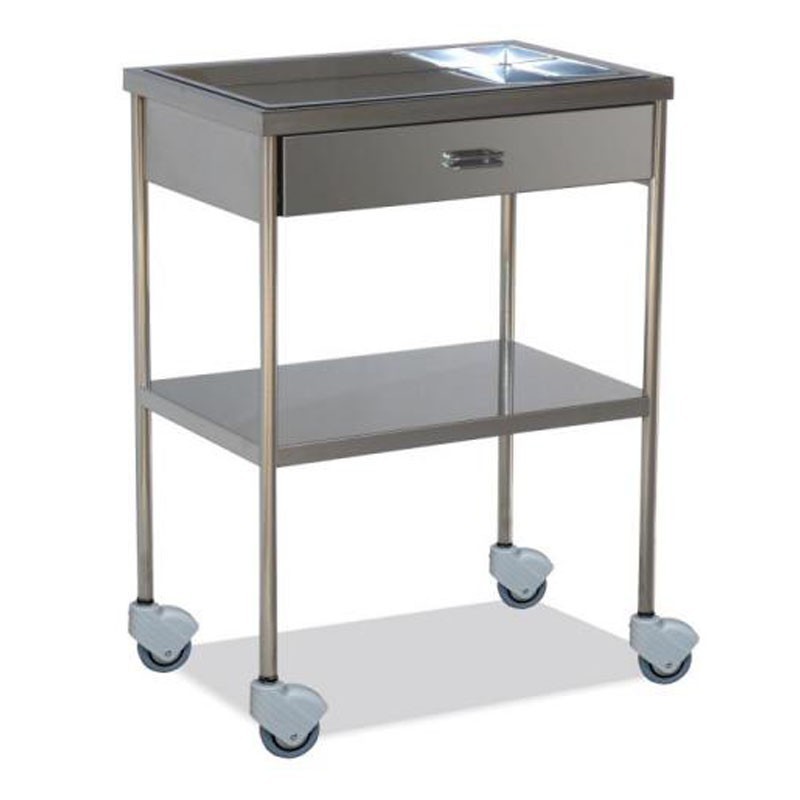 MESA AUXILIAR INOXIDABLE 1 CAJON Y 2 ESTANTES ,SUPERIOR EXTRAIBLE