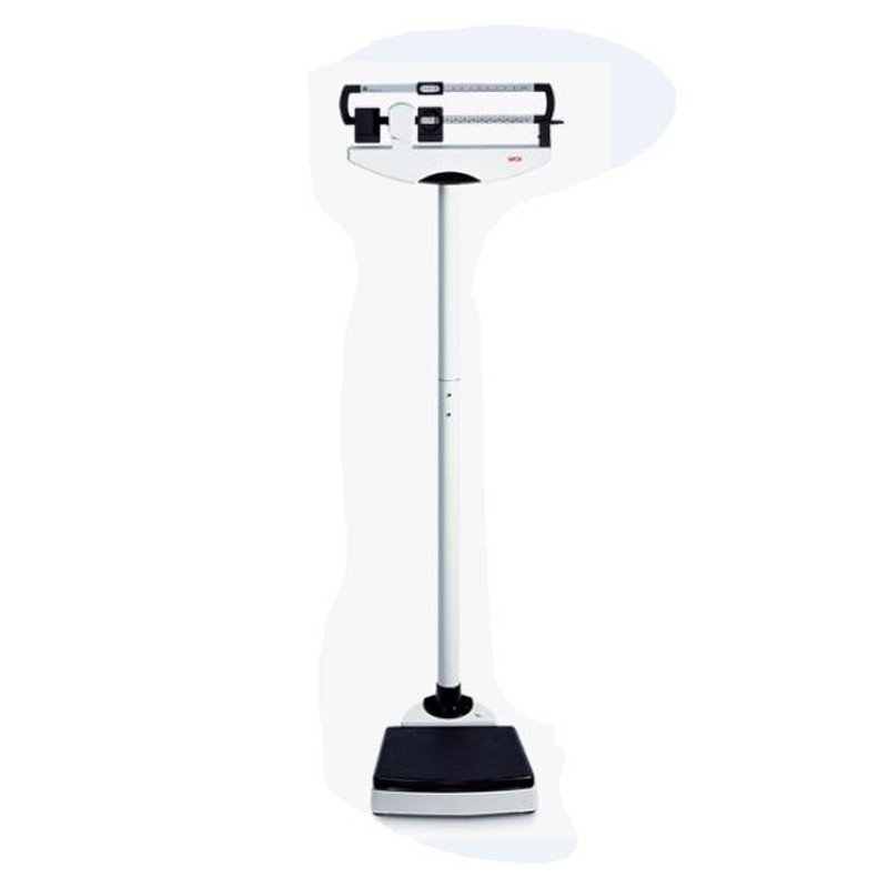 Báscula mecánica de columna con pesas deslizantes a la altura de los ojos