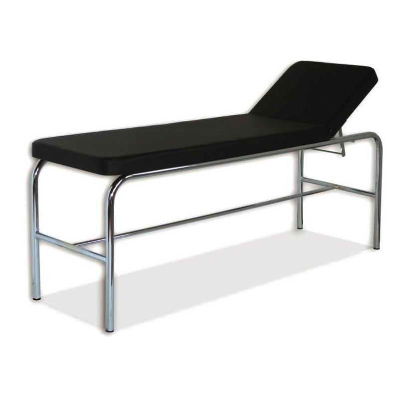 Camilla de acero pintado en acero inoxidable y cabecero regulable.
