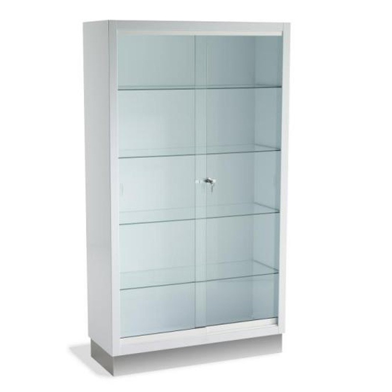VITRINA PIE P. CORREDERAS BLANCA 90 X 35 X 160 ZOCALO INOX